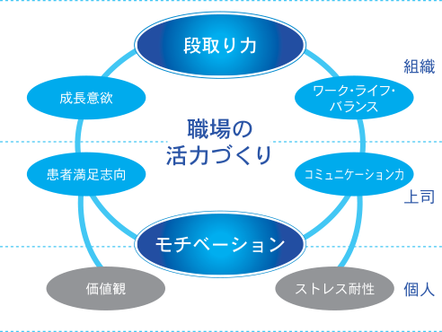 働き続けたくなる職場環境を実現するには、何よりも職員の働く意欲(内発モチベーション)を高めることが大切です。